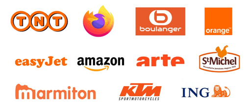 L’échange et la vitalité : Le nom orange renvoie au fruit et apporte fraicheur et vitalité à la représentation de cette couleur, grâce à l’aspect pulpeux et juteux du fruit et à ses vitamines. C’est une couleur phare pour évoquer la communication, l’échange, le partage, utilisée dans des secteurs forts diversifiés mais dont l’intention est de fédérer. Cette couleur se prête donc à de multiples marques de tout univers qui souhaitent mettre en avant des valeurs humaines de convivialité et de partage, quitte à sortir des couleurs conventionnelles de leur secteur d’activité. A éviter donc pour les enseignes qui souhaitent maintenir des valeurs traditionnelles.